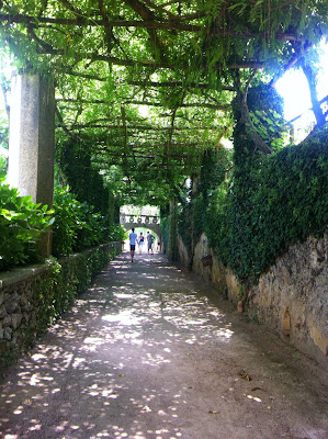 After, we headed down a wooded path to visit all the other monuments on the map such as 'Mercury's Seat', the 'Temple of Bacchus' and 'Eve's Grotto'. On route back to the entrance, we passed the 'Statue of David' and stopped at the 'Rose Terrace' where there was an open ancient building decorated with mosaics called 'The Tea Room'. The very last thing we saw (but most people would see it first) was 'The Closter' which looked a bit like a very decorative well in the midst of a beautiful garden and below, there was a crypt, also one of the most amazing views I've seen. After the crypt, we had seen all that the garden had to offer (even though, I could probably stand and stare out at the landscape forever) and so we decided to eat lunch. I would seriously advise anyone visiting Ravello to go to this beautiful garden.